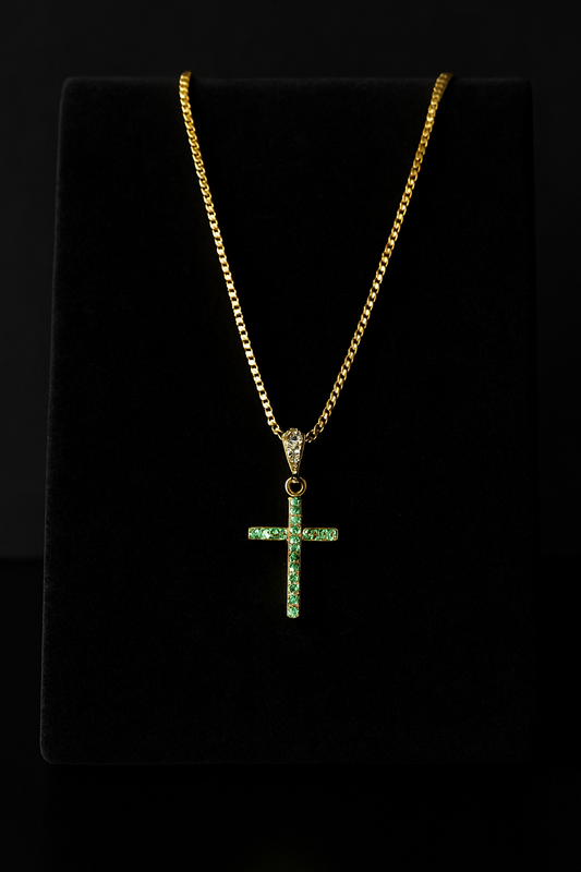 Crux Aura™ | Cruz de elegancia divina bañada en oro 18K con zirconias verde esmeralda + estuche de lujo 💎