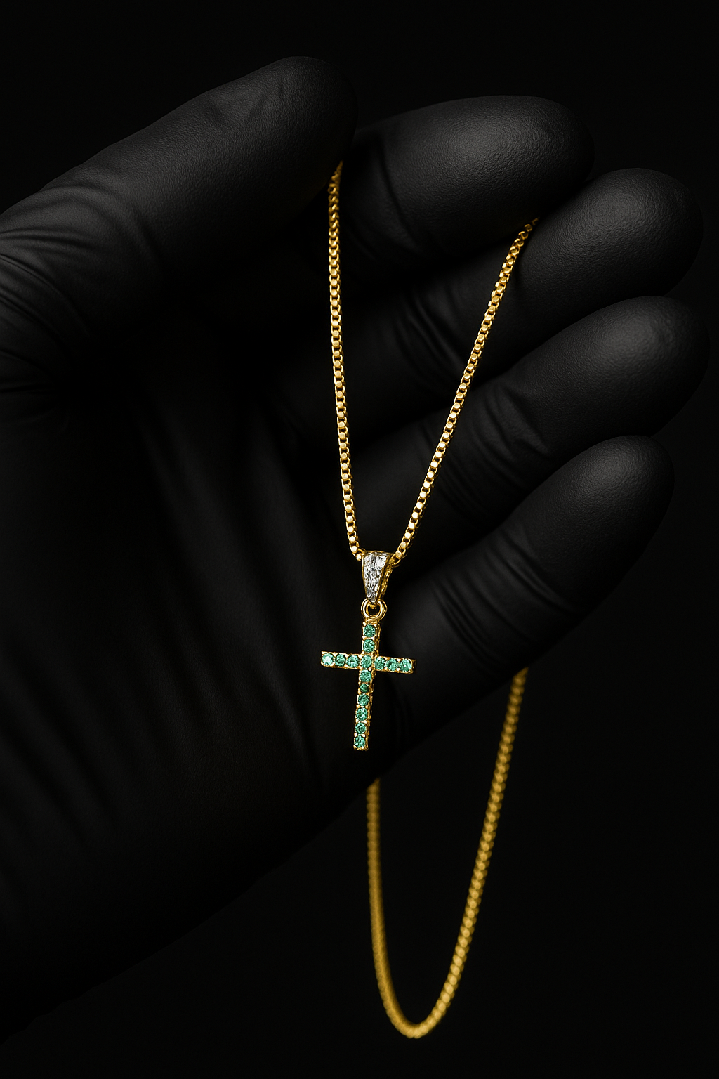 Crux Aura™ | Cruz de elegancia divina bañada en oro 18K con zirconias verde esmeralda + estuche de lujo 💎