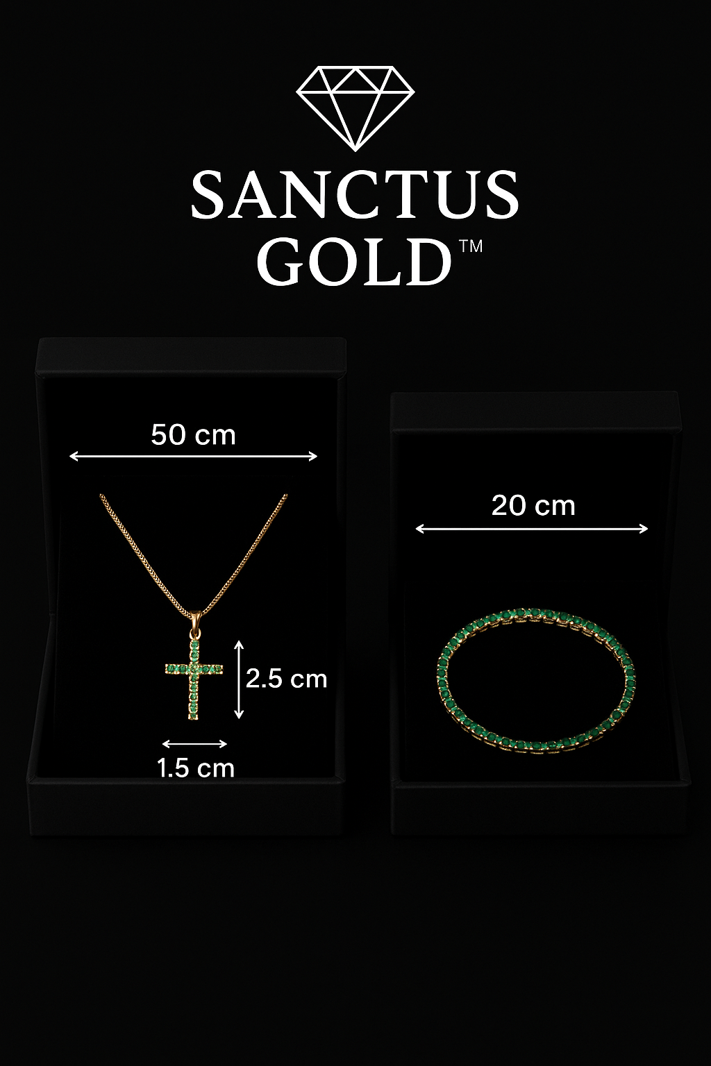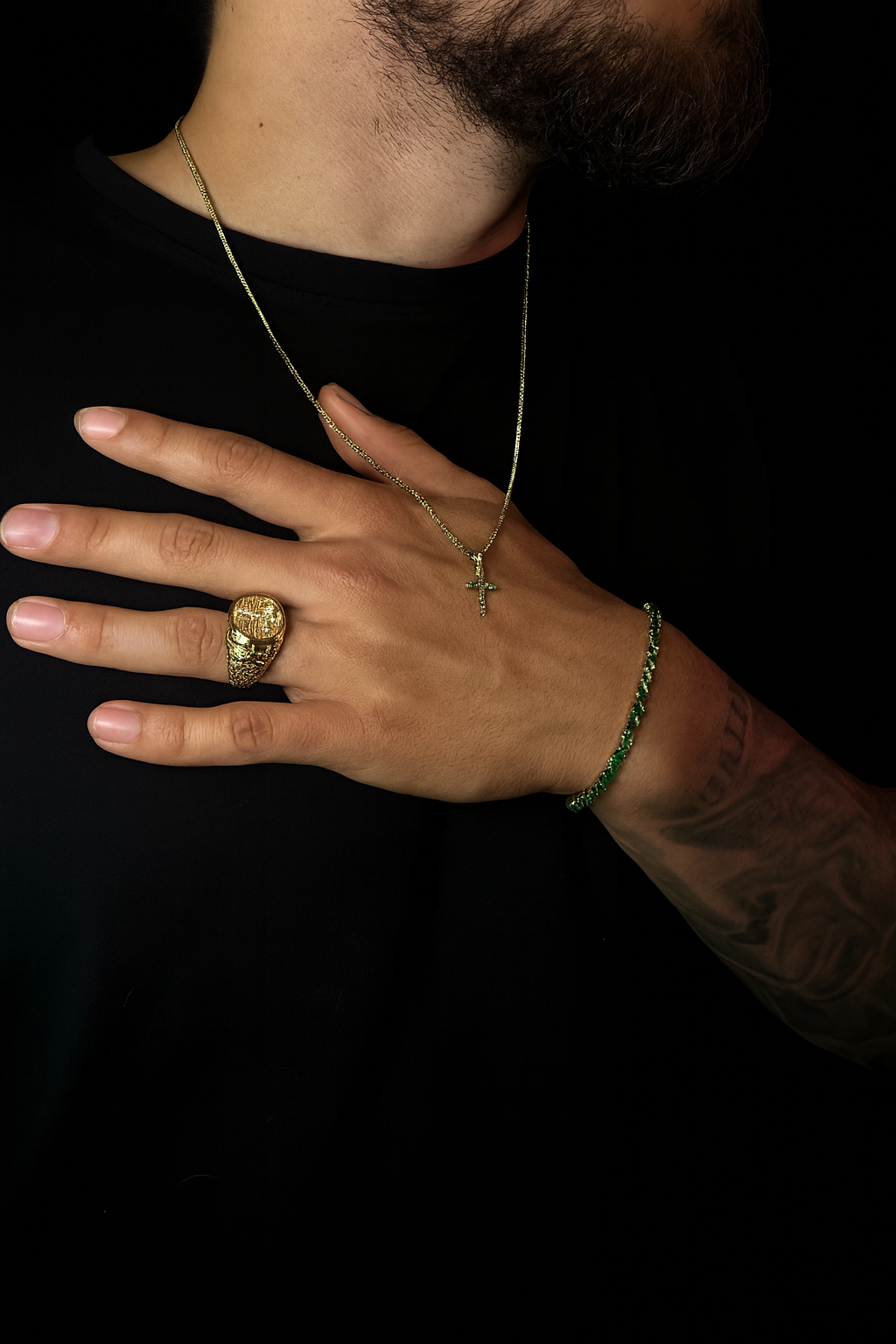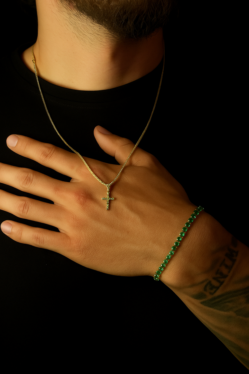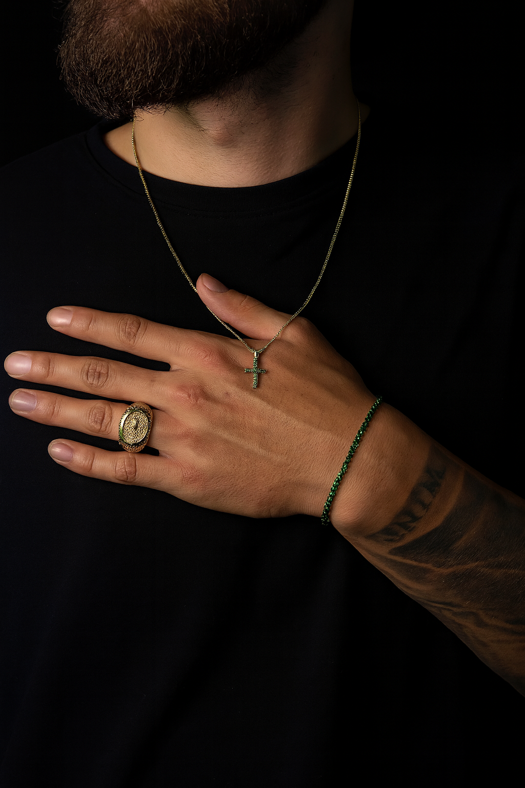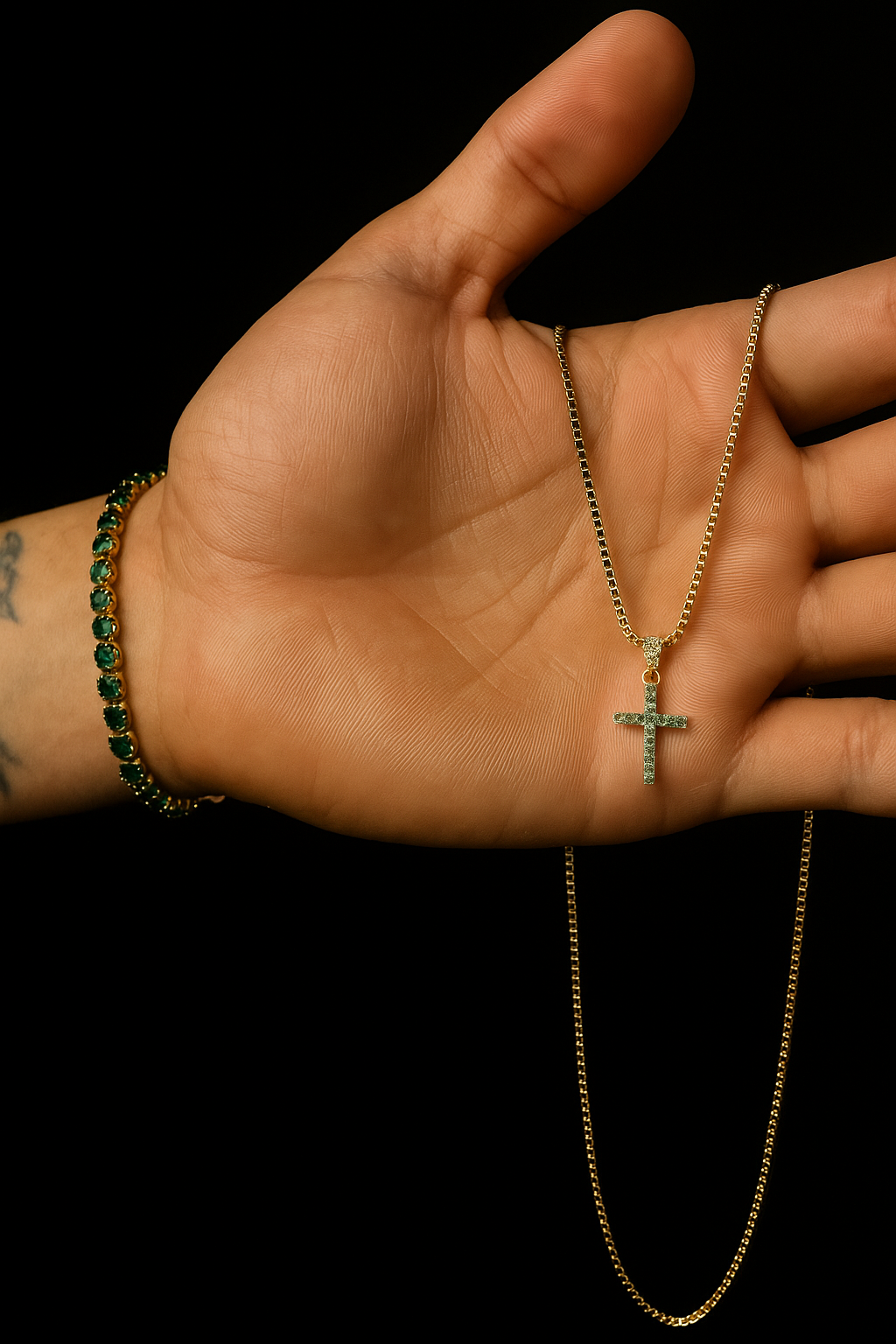 Cruz, Pulsera Y Anillo En Oro 18k Y Zirconias De Esmeralda - Brillo de Espiritualidad y Distinción 💎