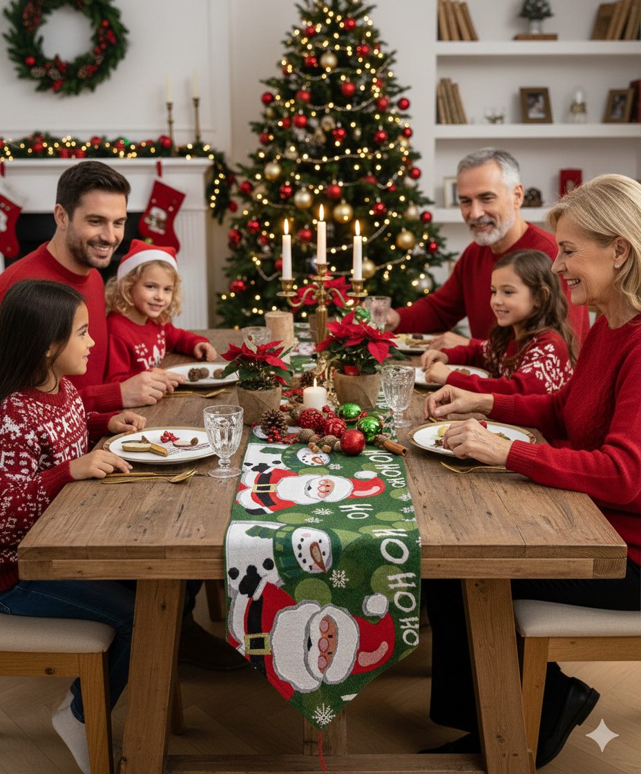 Luxe Runner™ Camino de Mesa Navideño que Transforma tu Mesa en el Corazón de la Navidad